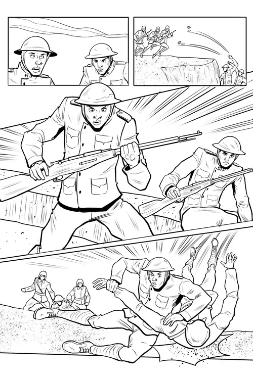 I began my career working on animated TV content before making the jump to comics. My work has included the critically acclaimed graphic novel Colin Kaepernick: Change the Game (Graphix), The Badguys (Webtoon), Pound (Webtoon), and Dryfoot (Mad CaveStudios).
